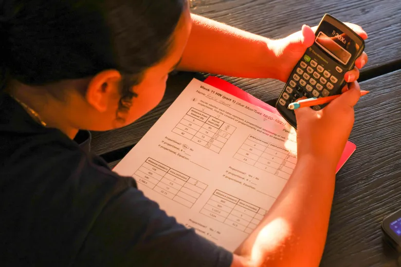 In a scene as idyllic as a Norman Rockwell painting, Elevate Tutoring fellow Mia Matute sat at a dining table with her 12-year-old tutee, Kaycie Grant, as golden hour light shone on the fractions of a paper worksheet as they worked together one Friday evening in the Oakland hills.